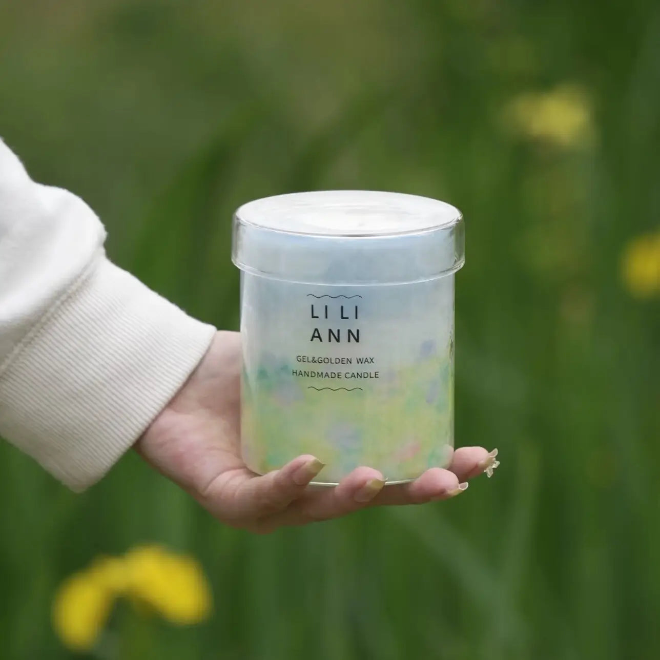 - Glass cup pre-filled with crystal wax & preserved flowers