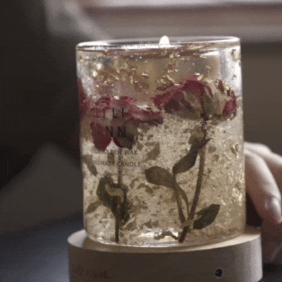 Transform each season indoors with CHASSENCE’s handmade floral glass cup—clear crystal wax encases real blooms—plus a rechargeable wooden lamp. Place a soy-beeswax insert inside, adjust LED glow & essential oil, relax sustainably.