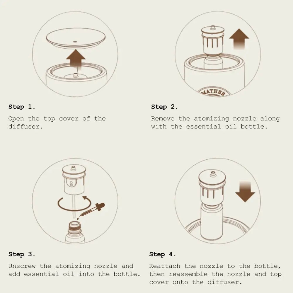 To maintain ​consistent atomization efficiency, clean the nozzle every 2-3 weeks or when switching oil scents. Simply rinse under ​lukewarm running water, air-dry thoroughly, and reattach.