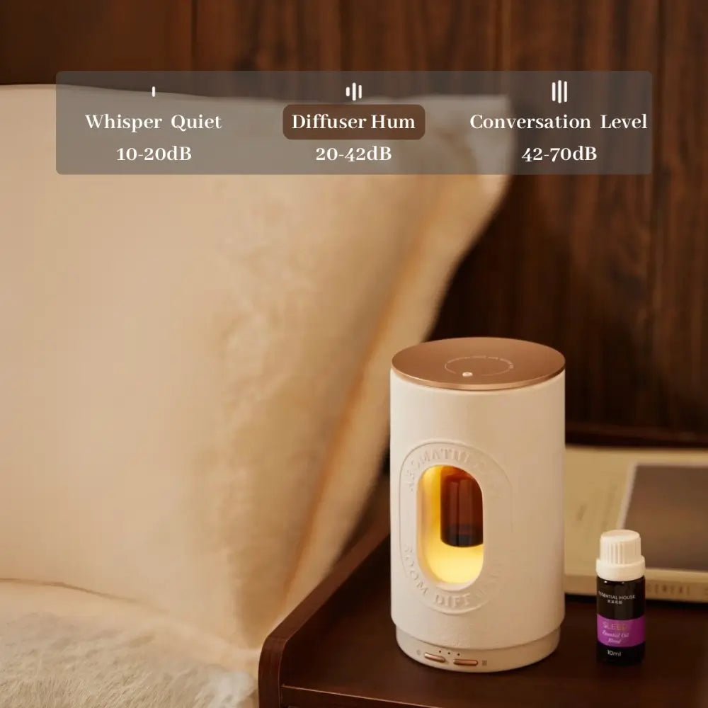 Elevate your wellness journey with CHASSENCE AromaSculpt Pro – a wireless luxury diffuser using advanced cold-air technology to disperse essential oils without dilution. Enjoy 18-hour cordless operation, library-quiet 42dB design, and customizable ambiance lighting. Crafted with rose gold metal and concrete resin, it’s a functional art piece for modern spaces. Includes a 30ml Santal oil blend with layered woody notes.
