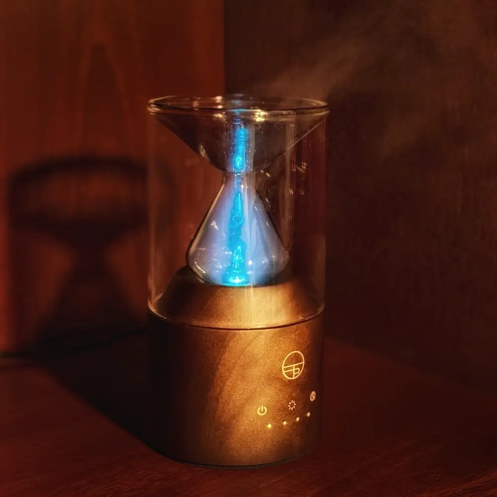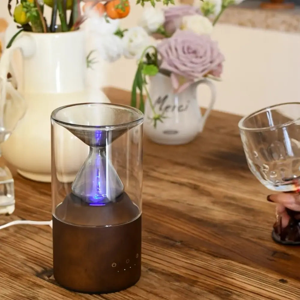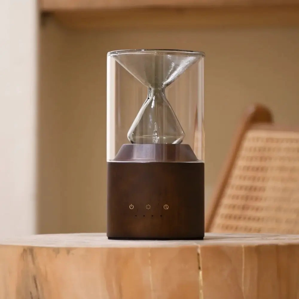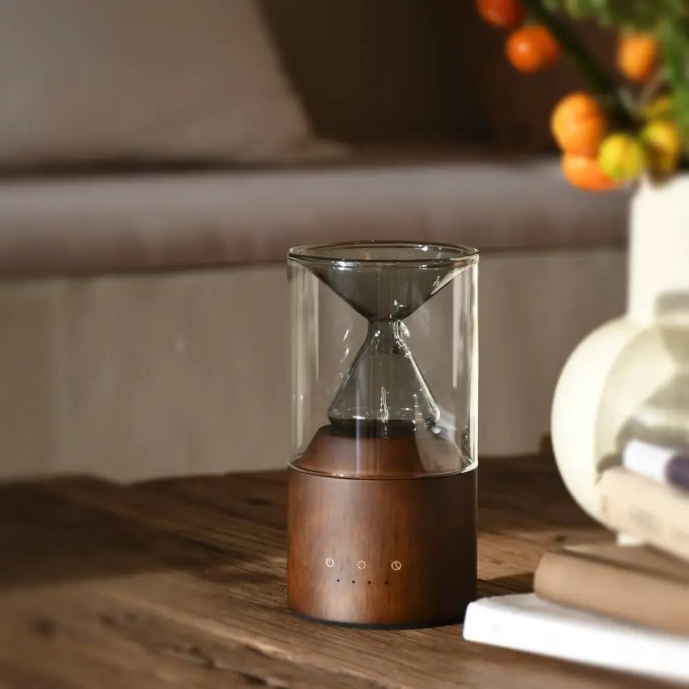Experience effortless aromatherapy with this cordless hourglass diffuser. Handcrafted from wood and glass, it delivers pure oil mists and ambient light to instantly relax your space—no water or heat required.