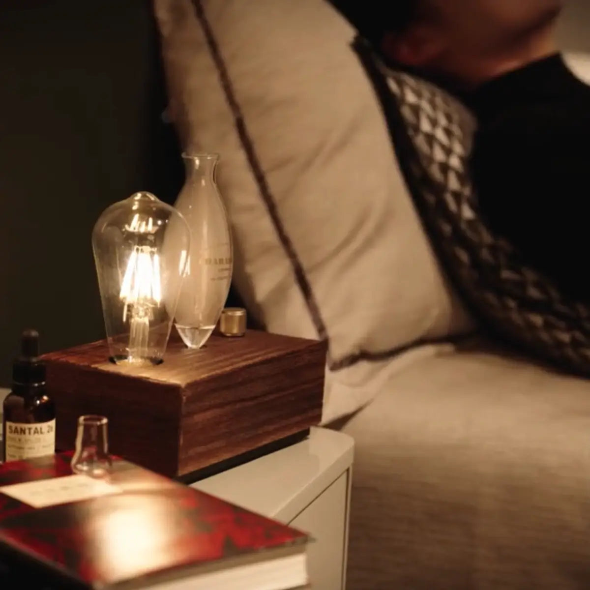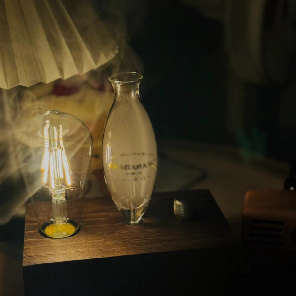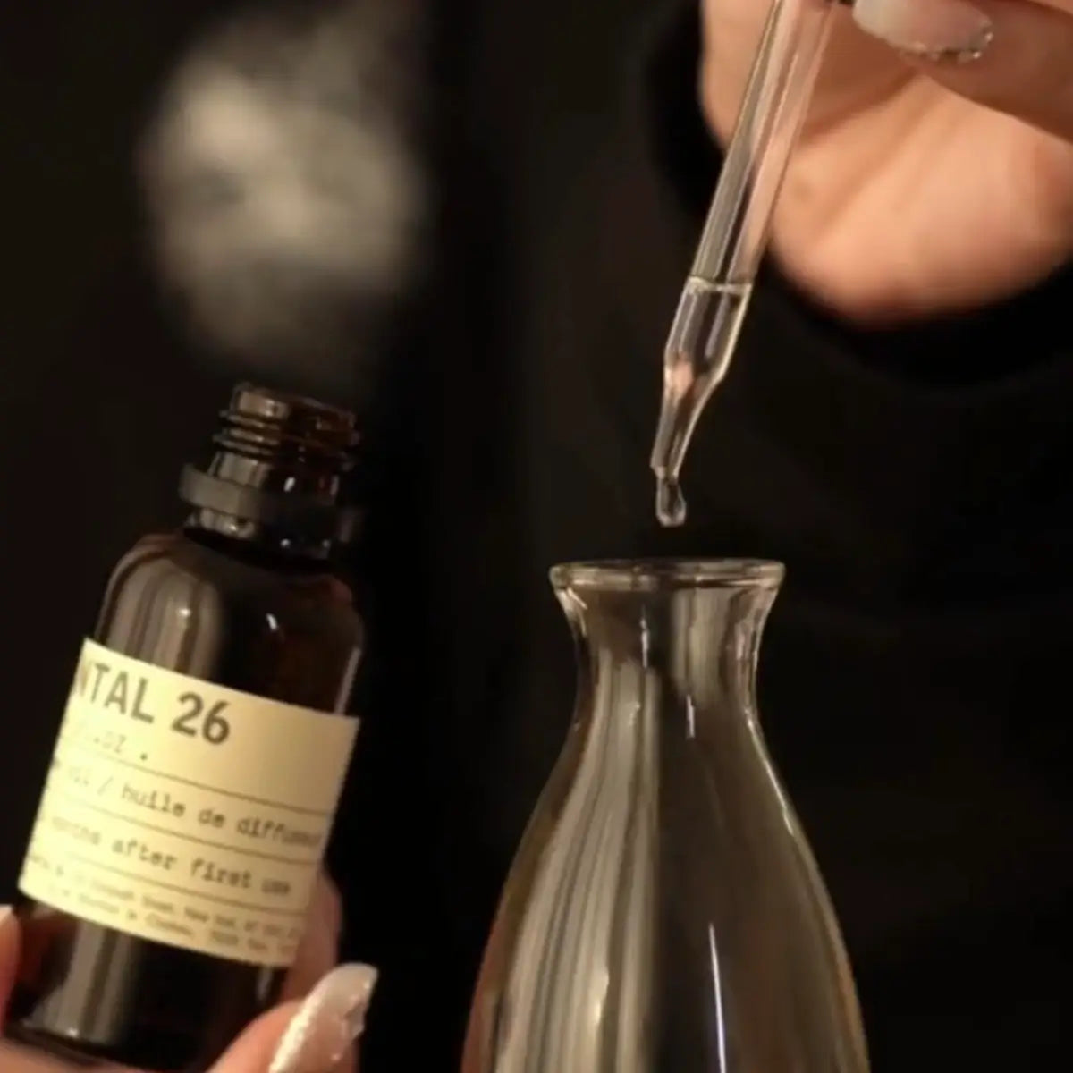 The included Santal 26 essential oil has a cool, woody scent that perfectly complements the retro diffuser design. It's a calming fragrance that enhances the vintage aesthetic of your space.
