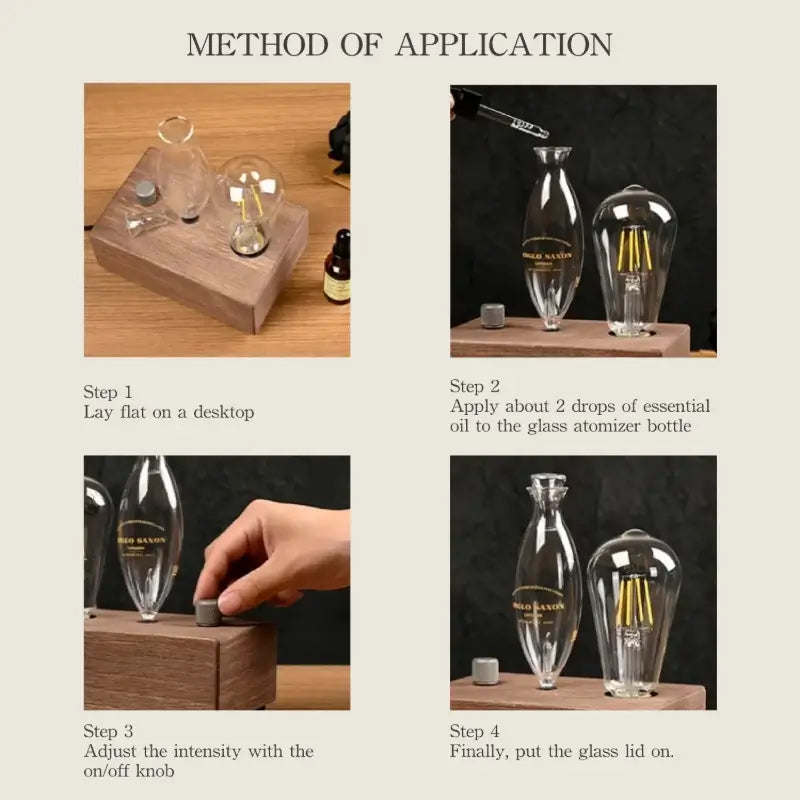 Classical Retro Aroma Diffuser with Lamp feature:Natural Wood Base